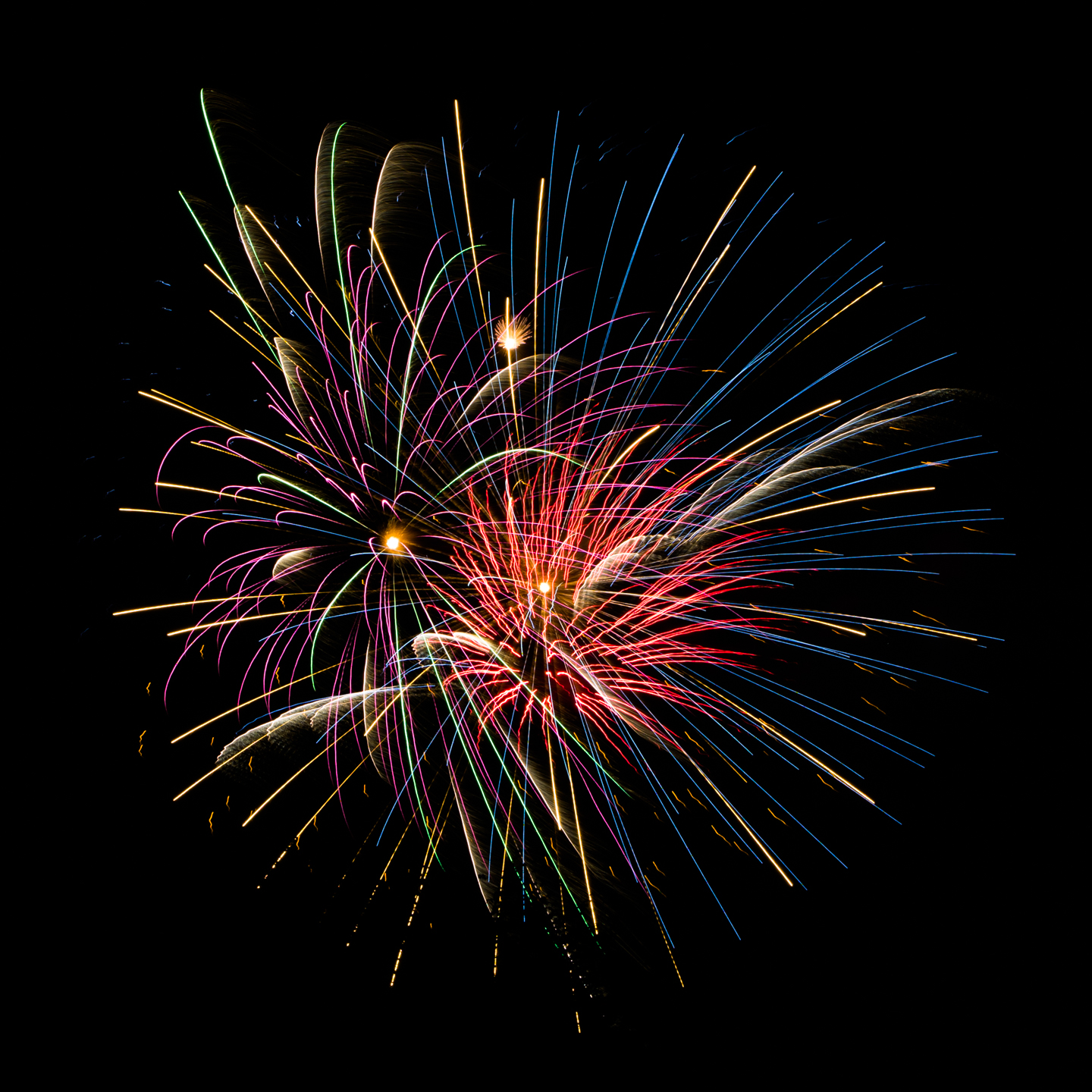 I did not anticipate the grande finale and kept my shutter speed at 2.5 seconds. I captured too many fireworks within that time frame, resulting in a blob of explosions. Next time, I’ll speed up the shutter speed and lower aperture value.